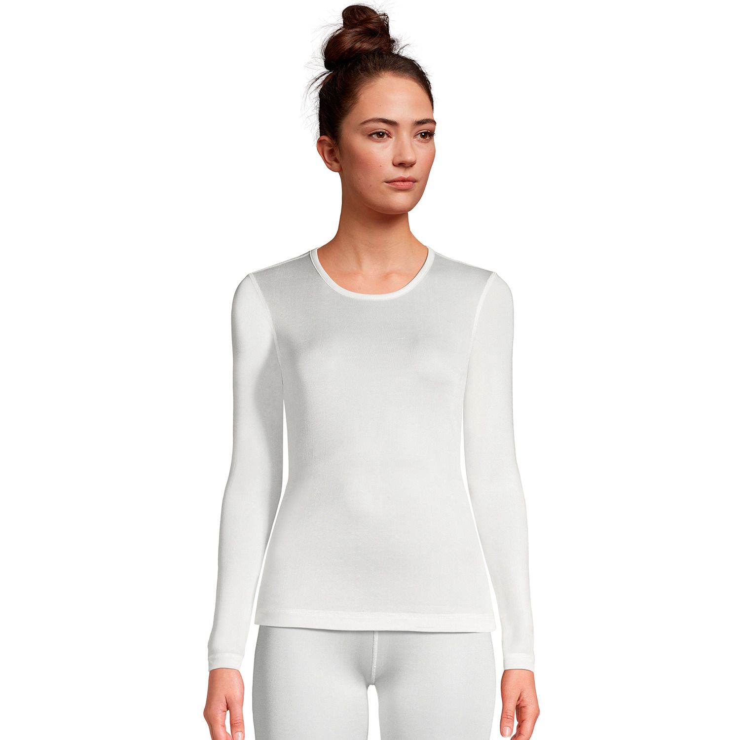 Lands' End Women's Silk Interlock Thermal Long Underwear Top Base Layer Crewneck Shirt - Medium - Ivory