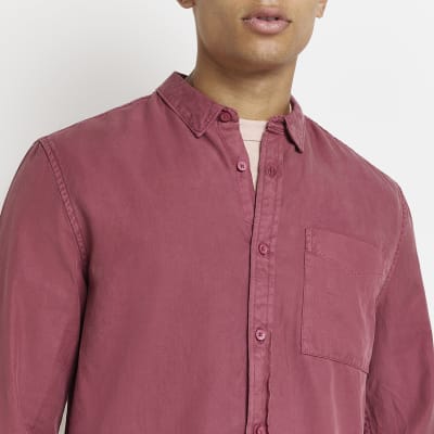 Mens River Island Dark Pink Regular Fit Lyocell Shirt